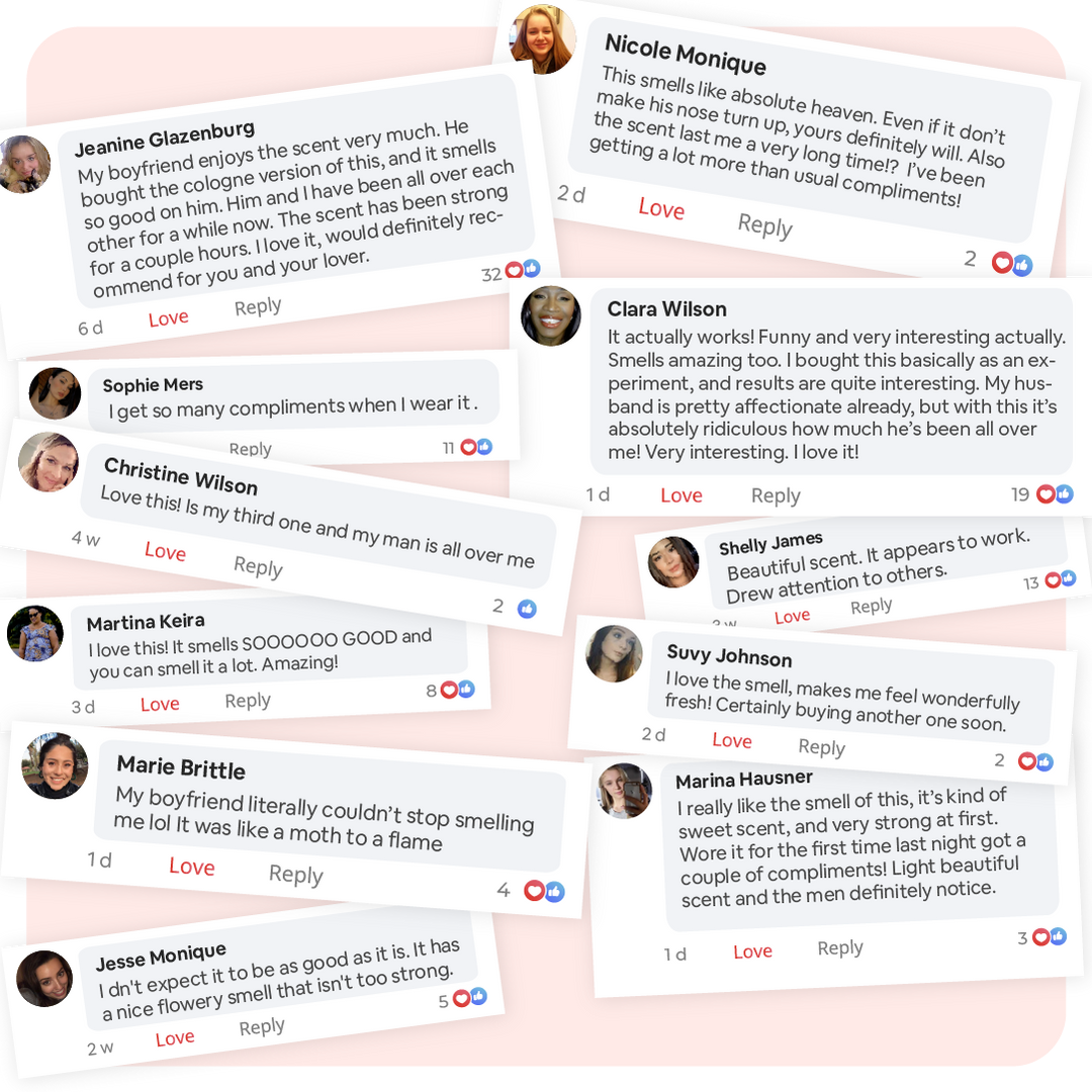 It’s infused with a soft blend of pheromones that react with your body chemistry—so it smells slightly different on everyone, but always good.
