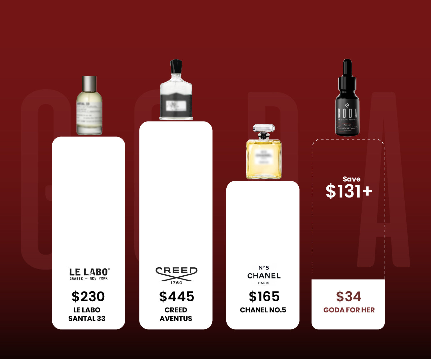 Goda costs significantly less than other designer scents, delivering even better projection and lasting strength with just two drops.